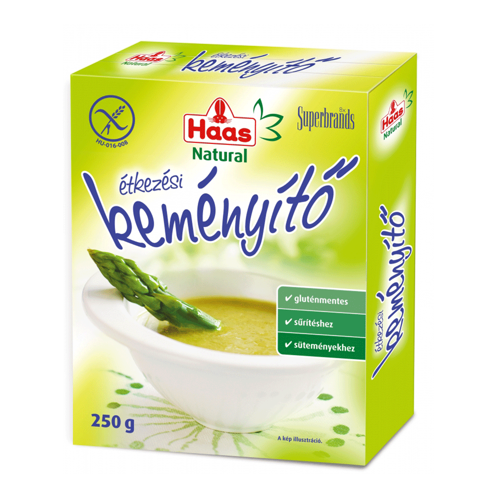 Amidonul alimentar se utilizeaza de obicei in patiserie pentru ingrosarea cremelor sau sosurilor folosite in diverse prajituri. Amidonul alimentar este o substanta alba inodora, fara gust, care se poate obtine din vegetale. Amidonul alimentar fara gluten de la Haas este ideal si persoanelor cu intoleranta la gluten, este perfect pentru prajituri, omlete, taitei, strudeluri și produse de patiserie facute cu praf de copt, de asemenea ideal si pentru gatitul supelor si a garniturilor.