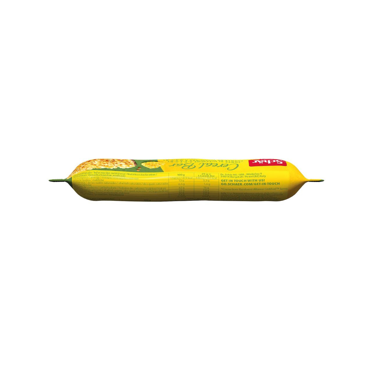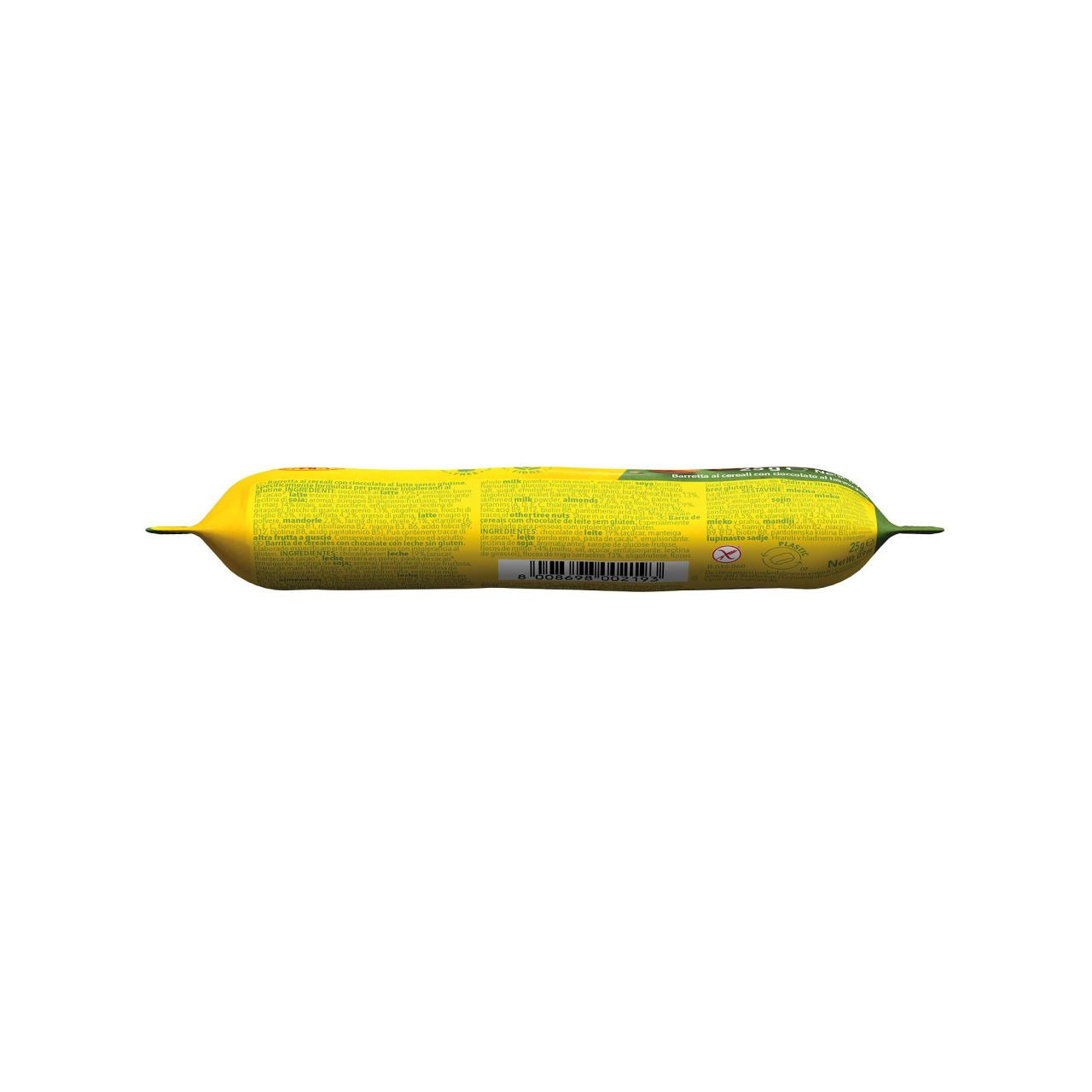 Ingrediente: ciocolata cu lapte 20% (zahar, unt de cacao, LAPTE praf degresat, masa de cacao, emulgator: lecitina din SOIA, aroma), sirop din glucoza-fructoza, fulgi de porumb 13% (porumb, sare, zahar), fulgi de hrisca 12%, oligofructoza, fulgi de mei 8%, ulei de palmier, ulei de floarea soarelui, orez expandat 4%, LAPTE praf degresat, MIGDALE 2.6 %, faina de orez, miere 1.9 %, vitamine (A, D, E, C, tiamina B1, riboflavina B2, niacina B3, B6, acid folic B9, B12, biotina B7, acid pantotenic B5).
