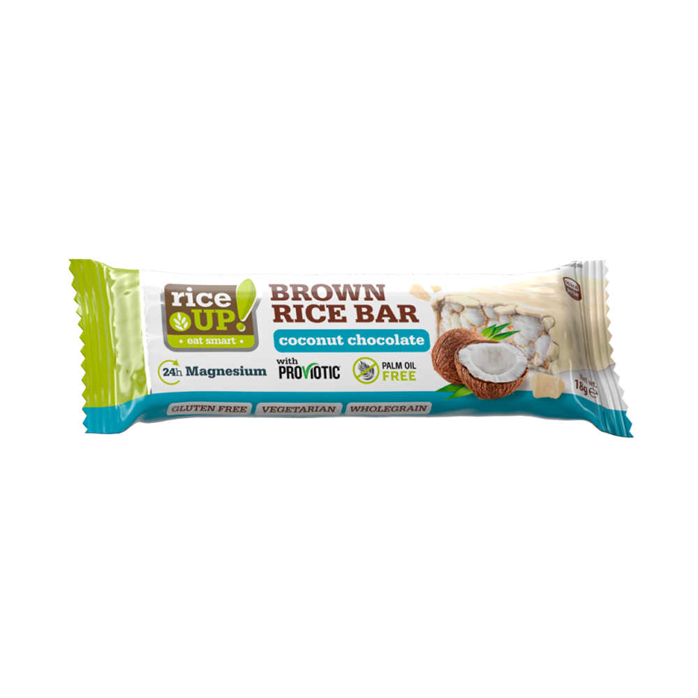 Baton din orez fara gluten cu ciocolata alba cu cocos 18gr Rice Up