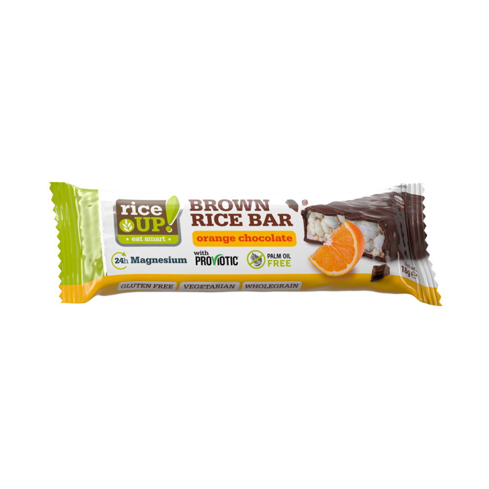 Ingrediente: ciocolata neagra 68% (belgiana)[unt de cacao, zahar, lapte praf degresat, grasime lactata, lactoza, agent emulgator:lecitina de soia]orez integral 25%, citrat de magneziu 5.5%. Proviotic (Lactobacillus plantarum GLP3, tahini din floarea soarelui, aroma naturala de portocale 0,2%. Ciocolata: masa de cacao uscata: nu mai putin de 38%.