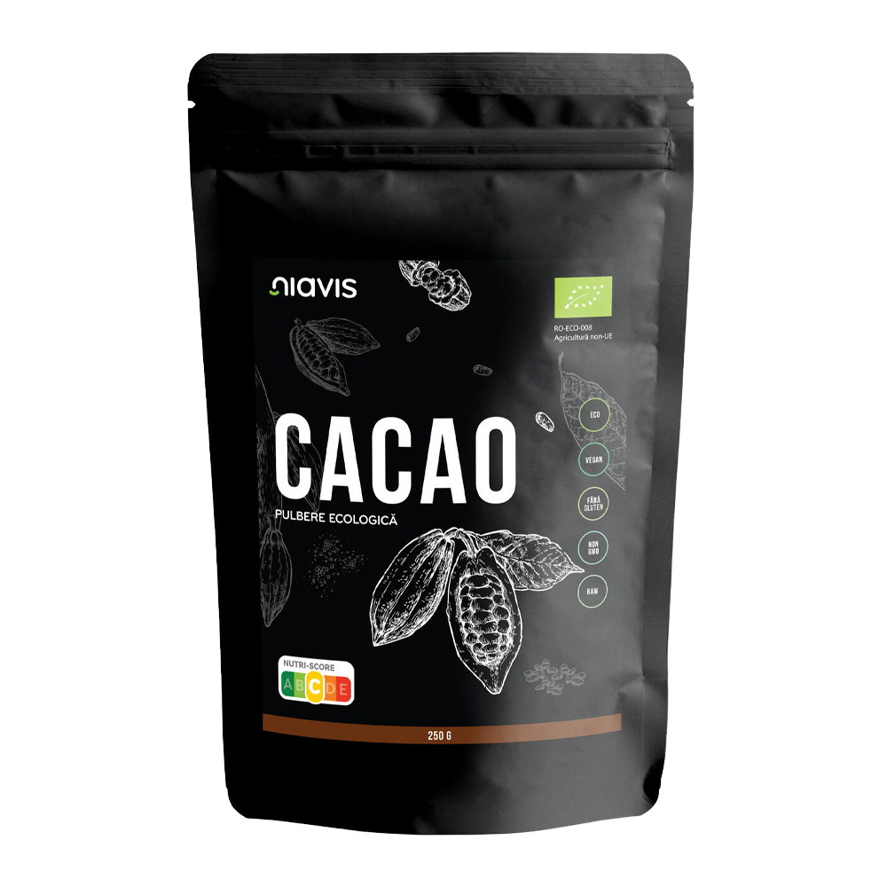 Pulberea de cacao RAW este cea mai calitativa cacao, avand un continut foarte redus de cafeina. Este foarte bogata in nutrienti benefici pentru organismul uman si o sursa importanta de antioxidanti (polifenoli, catecine, epicatecine), minerale, vitamine, triptofan si serotonina triptaminica (substante care îmbunatatesc starea de spirit) si acizi grasi Omega 6.