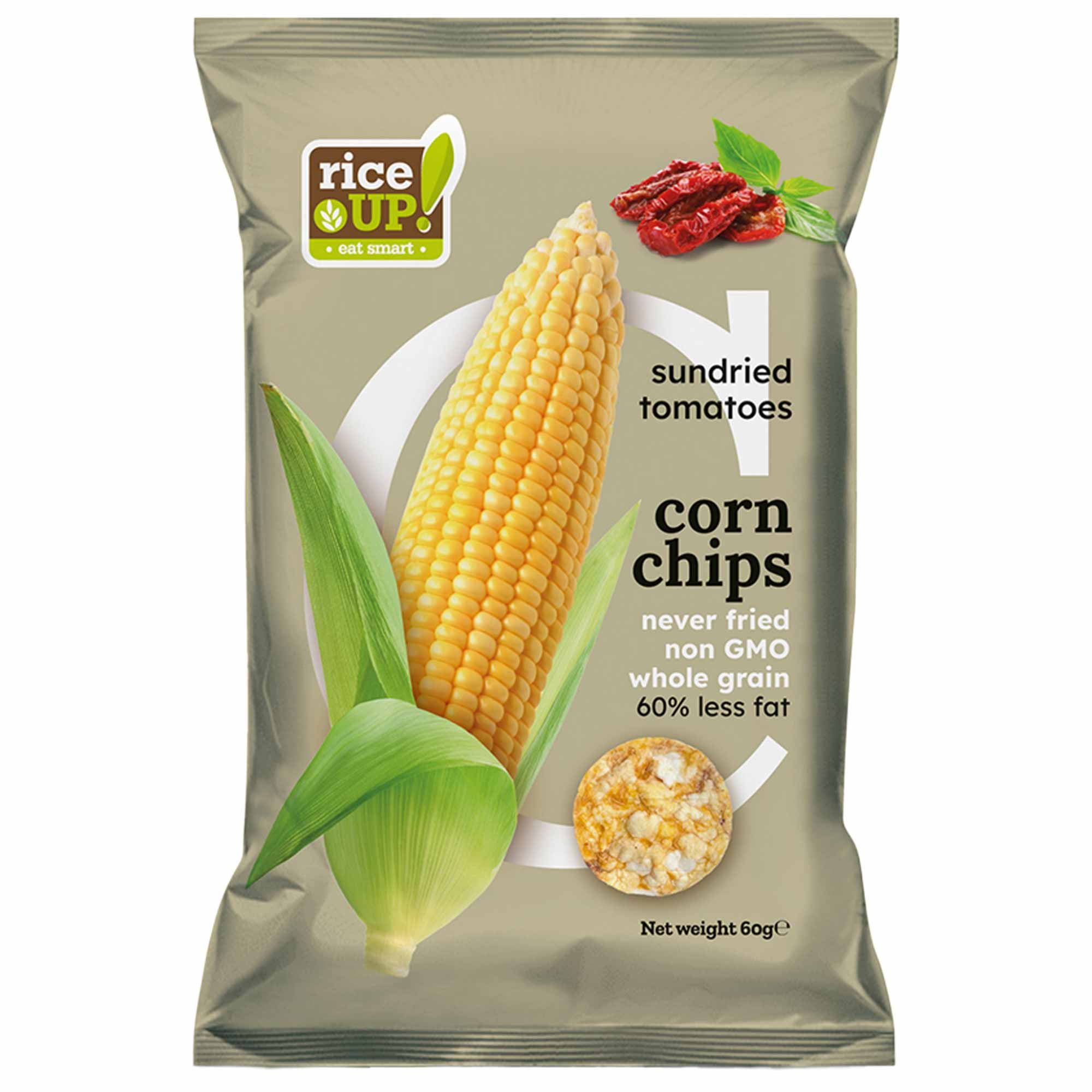 Chipsuri din porumb cu 60% mai putine grasimi decat chipsurile de porumb obisnuite! Aceste chipsuri expandate sunt 100% naturale, neprajite, bogate in fibre si fara gluten, OMG, MSG sau conservanti. Savureaza aroma delicioasa a chipsurilor Rice Up din porumb galben cu gust de rosii uscate 🍅.