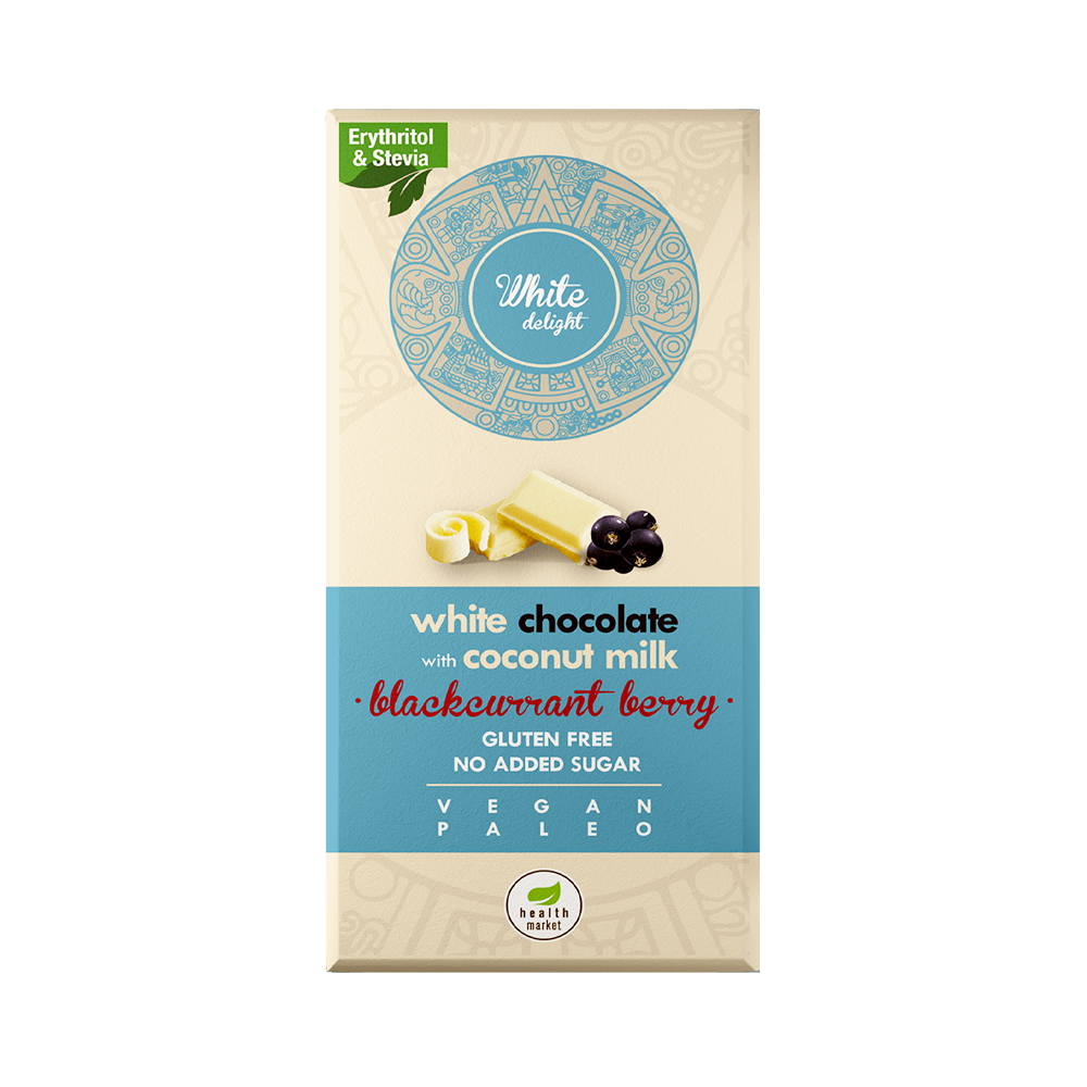 Ingrediente: unt de cacao (40%), lapte praf de cocos (24%), indulcitor: eritritol (17%), fibre alimentare (inulina, polidextroza), amidon de tapioca, coacaze negre intregi liofilizate (4%), emulgator (lecitina de floarea soarelui), aroma, indulcitor: steviol-glicozide (70 mg/kg).