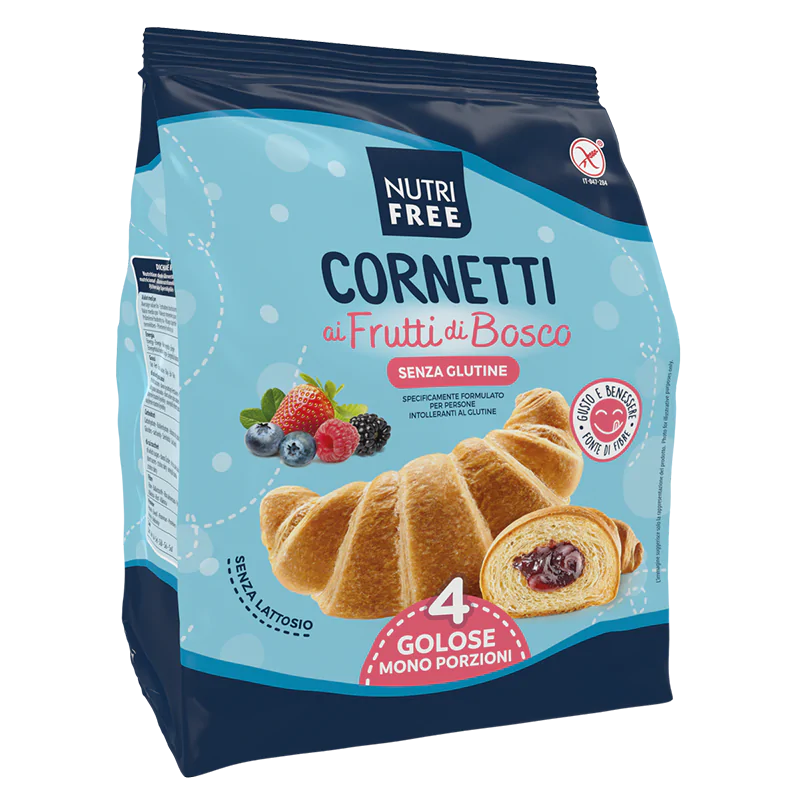 Ingrediente: amidon din porumb, apa, preparat din fructe de padure 18% (sirop de glucoza-fructoza, fructe de padure in proportii variabile 35% (capsuni, mure, zmeura, afine), zahar, adaosuri: pectina si alginat de sodiu; corectori de aciditate: acid citric, citrat de sodiu, citrat de calciu; coloranti: antociani, conservant: sorbat de potasiu; arome), ou, zahar, unt* fara lactoza, faina de orez, fibre de psyllium, drojdie, sare, adaosuri: hidroxi- propilmetilceluloza, guma guar, emulgatori: mono- si digliceride ale acizilor grasi, arome, proteine de soia. Dupa descompunerea lactozei produsul contine glucoza si lactoza.