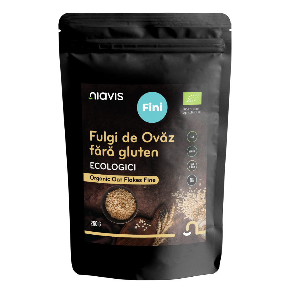 Fulgii de ovăz fini fără gluten ecologici de la Niavis sunt o alegere excelentă pentru un mic dejun sănătos și echilibrat. Obținuți din ovăz de cea mai bună calitate, cultivat ecologic fără utilizarea pesticidelor sau a altor substanțe chimice dăunătoare, acești fulgi sunt perfecti pentru persoanele cu intoleranță la gluten sau pentru cei care doresc să adopte o dietă fără gluten. Fulgii de ovăz sunt o sursă bogată de fibre, proteine și nutrienți esențiali, oferind energie și sațietate pe parcursul întregii zile.