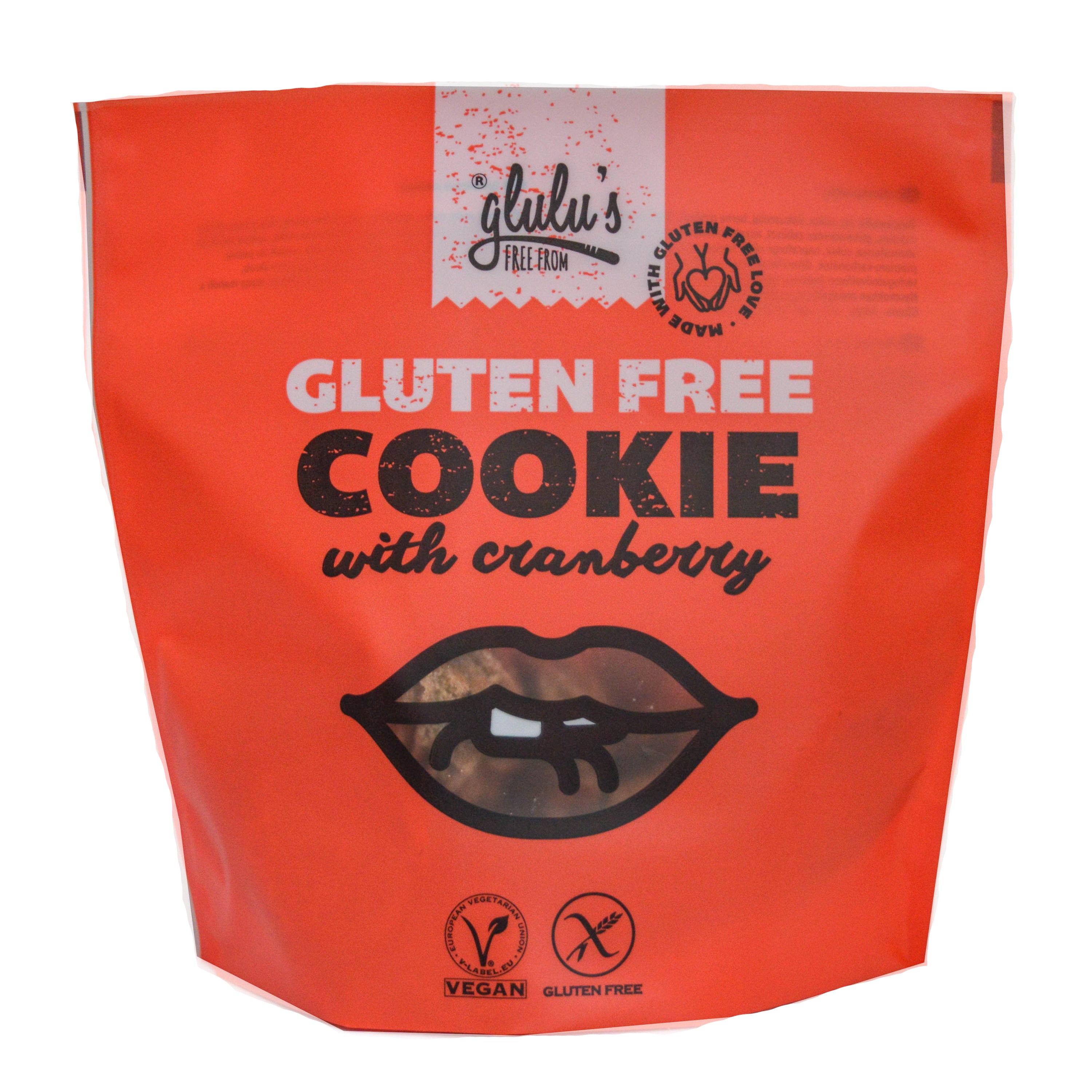 INGREDIENTE: apa, zahar, ulei de cocos, faina de orez brun, faina de orez alb, macinis de orez alb, faina de ovaz fara gluten, merisoare confiate % (merisoare confiate, zahar, ulei de floarea soarelui), praf de copt (agenti de crestere carbonati de sodiu, diosfati), amidon de cartofi), tarate de psyllium, agenti de crestere (bicarbonat de sodiu), sare de himalaya.