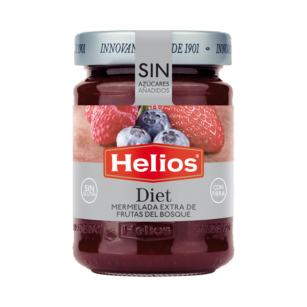 Ingrediente: fructe in proportii variate (capsuni, zmeura, afine), apa, fibre, indulcitori (maltitol, sucraloza), agent de gelifiere (pectina), regulator de aciditate (acid citric), conservant (sorbat de potasiu).