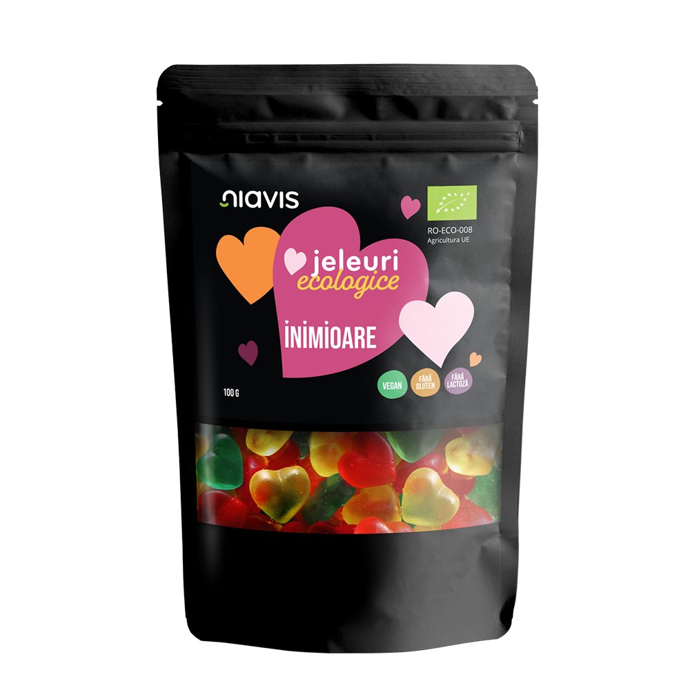 Jeleuri ecologice sub forma de inimioare, cu gust de cirese, mar, portocala, grapefruit, coacaze negre.