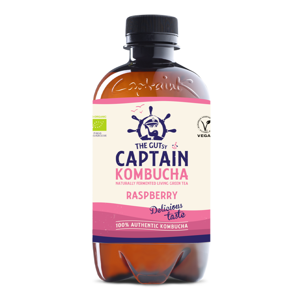 Captain Kombucha este o bautura fermentata delicioasa din ceai verde cu aroma de zmeura. Aceasta bautura vie este produsa cu bacterii vii si este bogata in antioxidanti si enzime benefice pentru sanatatea intestinelor, fiind un probiotic puternic ce intareste sistemul imunitar.