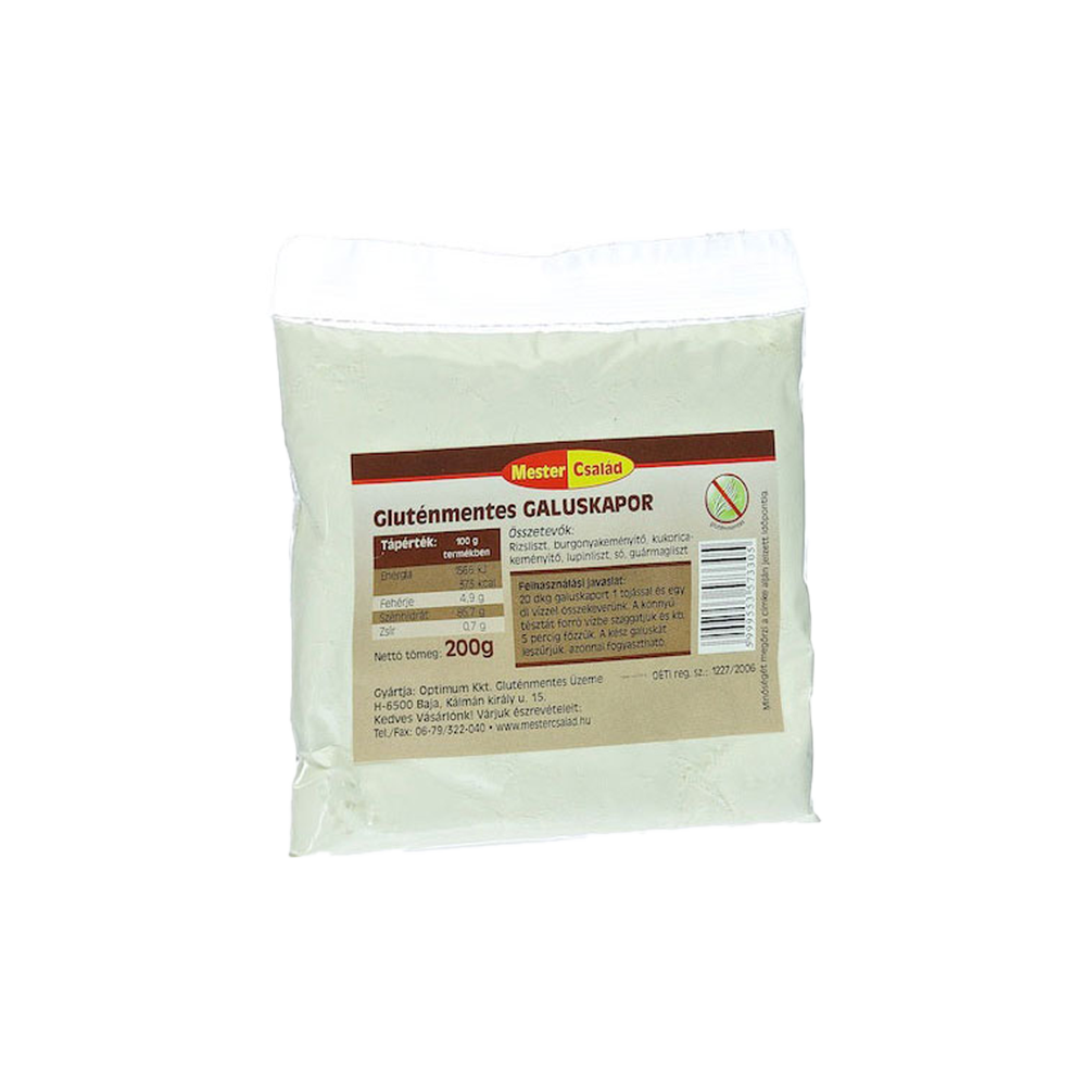 Ingrediente: faina de orez, amidon de cartofi, amidon de porumb, faina lupin, sare, guma guar.