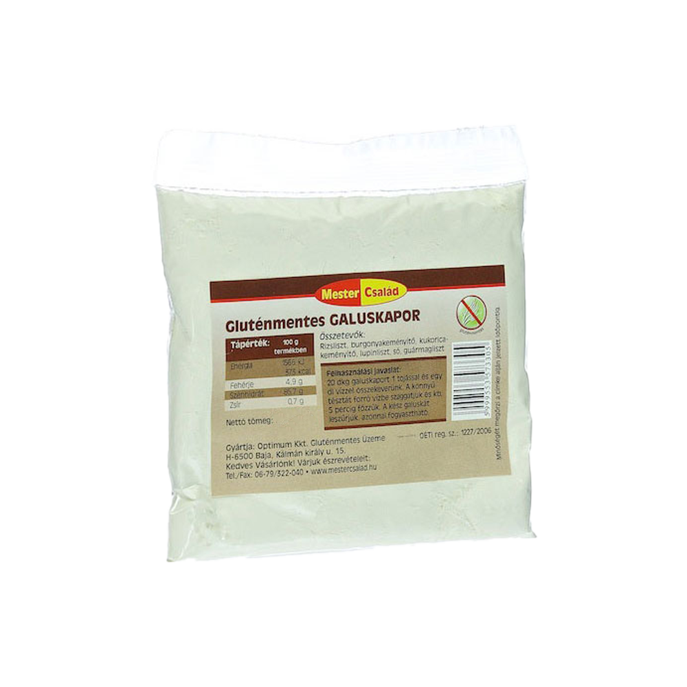 Ingrediente: faina de orez, amidon de cartofi, amidon de porumb, faina lupin, sare, guma guar.