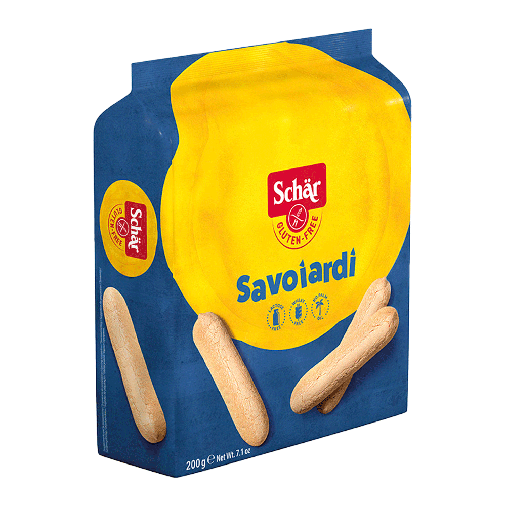 Piscoturi crocante si dulci fara gluten de la Schar, perfecti pentru orice desert, in special pentru Tiramisu. Le putem folosi pentru a decora cupe de inghetata sau salate de fructe sau le putem rontai pur si simplu, alaturi de o ceasca de ceai sau cafea.