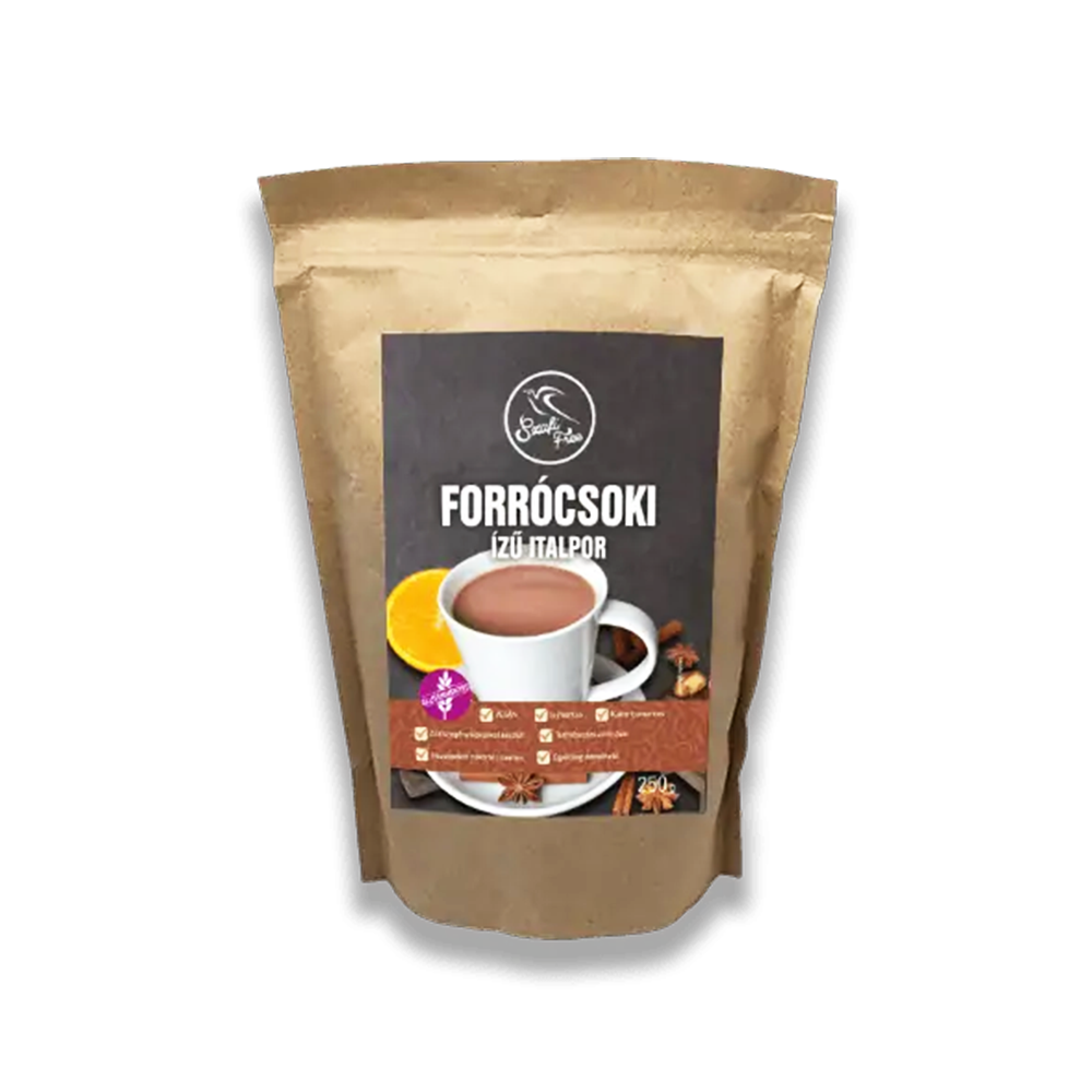 Recomandare pentru consum: Ingrediente (pentru 300ml): 15g praf de bautura cu gust de ciocolata calda, 300ml de lapte vegetal (sau lapte), inlocuitor de zahar echivalent a 30 g de zahar. Preparare: Se amesteca ingredientele si se pune la fiert amestecand in continuu, se lasa cateva secunde sa dea in clocot.