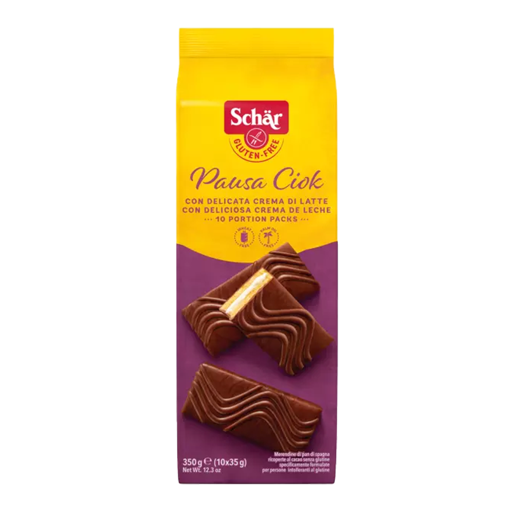 Ingrediente: zahar, uleiuri si grasimi vegetale in proportii variabile (ulei de floarea soarelui cu continut ridicat de acid oleic, ulei de cacao, unt de cacao), oua, sirop din glucoza-fructoza, lapte praf degresat 7%, faina de orez, amidon din porumb, stabilizator: sorbitol, faina de porumb, amidon din orez, cacao degresata 1.5%, emulgatori: mono- si digliceride ale acizilor grasi, lecitina din soia, arome naturale, fibre din cicoare, sare, agent de crestere: glucono delta-lactona, bicarbonat de sodiu, proteine din lapte, agenti de ingrosare: guma de seminte de roscove, guma xantan, agent gelifiant: agar. FARA GRAU.