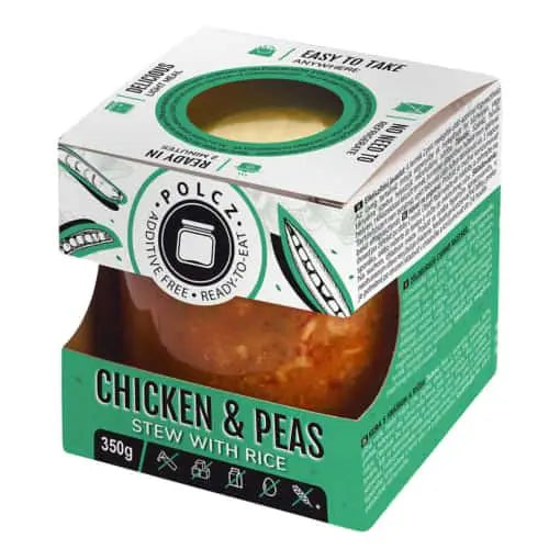 Mancare fara gluten cu carne de pui, mazare verde si orez gata pregatita - e nevoie sa fie doar incalzita!