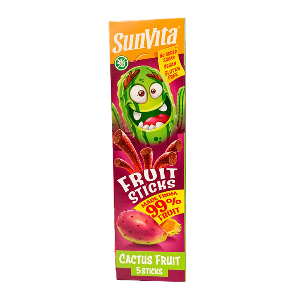 Sticks de fructe fara gluten pe baza de mere cu aroma de cactus fructe uscate, fara zahar adaugat, arome, indulcitori sau coloranti. Batoanele de fructe Sunvita contin doar ingrediente naturale si sunt vegane.