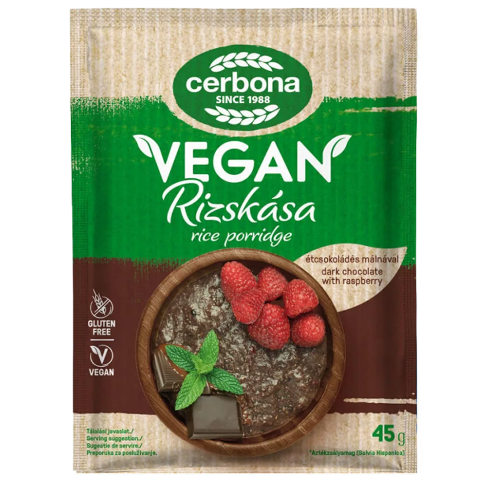 Terci de orez fara gluten, fara lactoza de la Cerbona cu zmeura si ciocolata neagra este o sursa completa de fibre dietetice cu faina de orez si bucati de fructe pentru a acoperi nevoile de energie de dimineata a organismului.